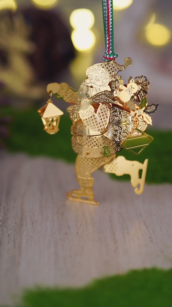 Christmas gold plated Skating Santa tree decoration - NEW
